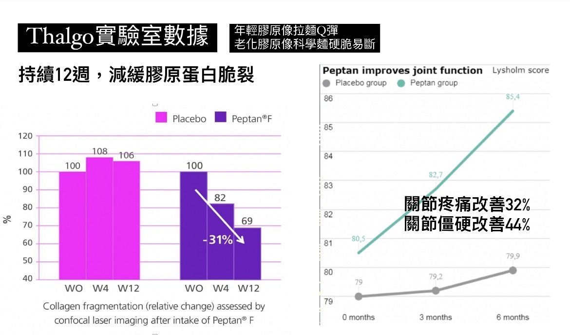 膠原蛋白存在我們肌膚、骨骼、韌帶與肌肉內,能幫助維持結構,因此不只是膚質的改變,更能改善整體關節的健康。